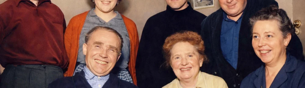 Photo: dans l’arrière-salle du Café du Soleil. En haut : Michel, Simone et André Traffey, Maurice Décotte. En bas : Maurice Traffey, Madame Yvonne, Mimi Traffey.